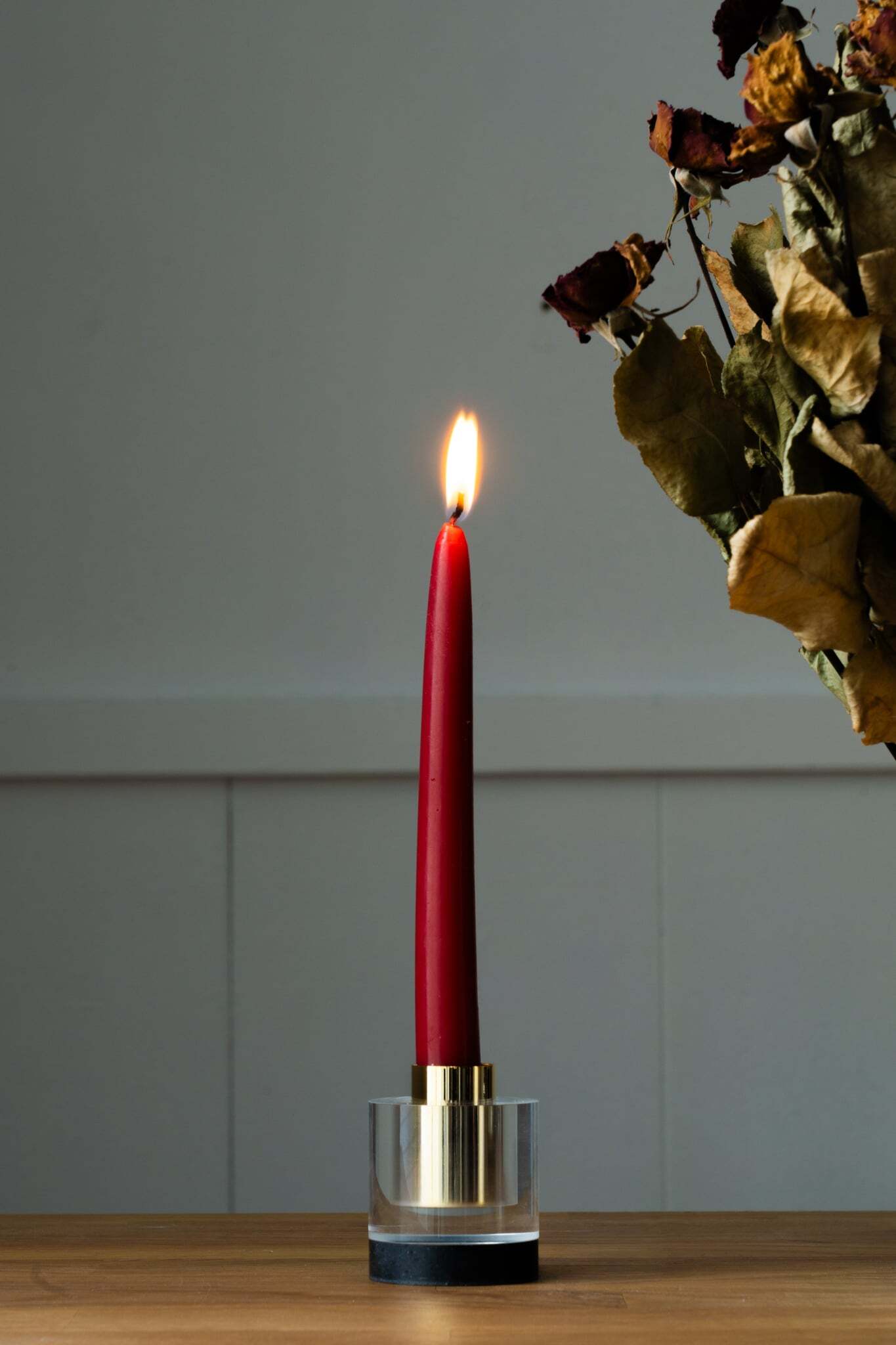 アクリルが光を透かし、蝋燭を宙に遊ばせる。ほのかな陰影が質感を際立たせ、空間に深みと奥行きを添えます。