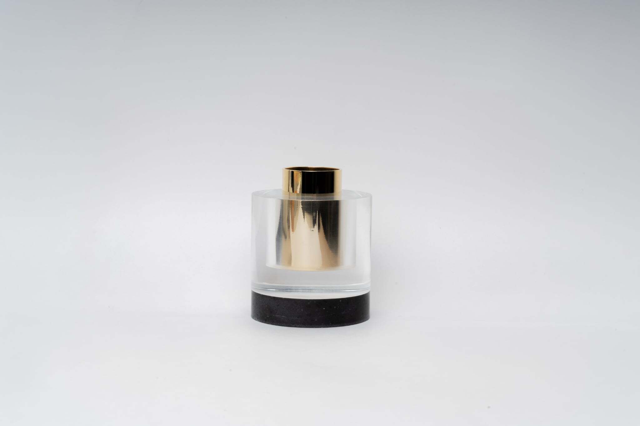 透明なアクリルの層、確かな質量を感じさせる人工大理石、そして気品を添える真鍮のアクセント。3種の異素材が均衡を保ちながら、凛とした姿で佇む。